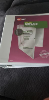 [This review was collected as part of a promotion.] We use binders quite a bit, both for work and personal use. It is frustrating when the binder rings get bent out of shape and won't hold paper any longer. This Avery binder is just like the name says....durable. The outside is sturdy, and the rings are strong to keep all of your papers together. The 2" size is nice for bigger projects.