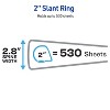 - Easily open and close the two inch slant rings that can hold up to 530 sheets and are back-mounted to keep pages flat