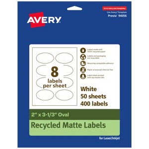 Avery Recycled Matte White Labels, 2" x 3-1/3" Oval