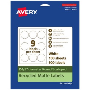 Avery Recycled Matte White Labels, 2-1/2" diameter Round Scalloped