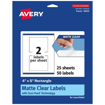 Avery Glossy Clear Rectangle Labels with Sure Feed, 4" x 5"