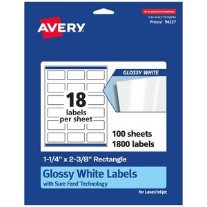 Avery Glossy White Rectangle Labels with Sure Feed, 1-1/4" x 2-3/8"