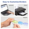 - Find sections quickly and easily with the translucent, clear tabbed dividers featuring bright, multicolor tabs