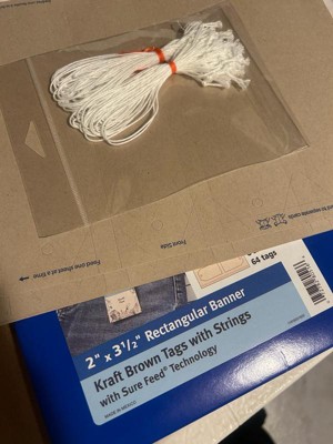 Add a rustic touch to gift tags, favor tags and more with Avery 80516 Kraft Brown 2" x 3.5" Banner Tags with Strings. Made with a kraft brown paper material that's smooth to the touch, Avery kraft brown cardstock adds a natural and handcrafted look to any project. This charming kraft brown material is made with an 80lb / 216gsm cardstock that is perfect for adding a little homespun flair to bookmark tags, sales tags, instruction tags, hang tags and more. Sure Feed technology reduces jams and smudges by creating a more reliable feed through your printer. Microperforations along the edges of each card make it easy to fold and tear away each card while creating a smoother edge without any jagged and rough perforations. Please Note: For best results, feed one sheet at a time and set your printer options for the cardstock quality setting.
