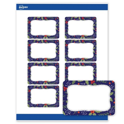 Add festive fun to branding and events with Avery 2" x 3" Rectangle Holiday Labels featuring the Navy Blue Border with Silver Flourished Frame design. Elevate your business or event with these premium, printable labels that feature a pre-printed border with elegant metallic accents, delivering a look no standard desktop printer can match. Featuring convenient Pop-Up Edge technology for faster peeling, these permanent customizable labels apply smoothly and stay securely in place. Built-in Sure Feed technology helps reduce misalignments and printer jams by creating a more reliable feed through your printer. Compatible with laser and inkjet printers, you can easily print food & beverage labels, labels for wax melts, bath & beauty labels, and more with professional results.