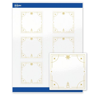 Add festive fun to branding and events with Avery 3" x 3" Square Holiday Labels featuring the Green Border with Gold Scalloped Frame design. Elevate your business or event with these premium, printable labels that feature a pre-printed border with elegant metallic accents, delivering a look no standard desktop printer can match. Featuring convenient Pop-Up Edge technology for faster peeling, these permanent customizable labels apply smoothly and stay securely in place. Built-in Sure Feed technology helps reduce misalignments and printer jams by creating a more reliable feed through your printer. Compatible with laser and inkjet printers, you can easily print holiday product labels, Christmas tag stickers, holiday gift stickers, and more with professional results.