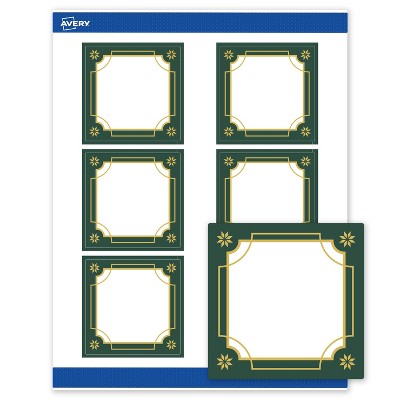 Avery Labels, 3" x 3", Gold-Green Border, Glossy, 60ct