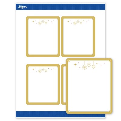 Add festive fun to branding and events with Avery 4" x 3-1/3" Rectangle Holiday Labels featuring the Metallic Gold Flourished Border with Holly Berries design. Elevate your business or event with these premium, printable labels that feature a pre-printed border with elegant metallic accents, delivering a look no standard desktop printer can match. Featuring convenient Pop-Up Edge technology for faster peeling, these permanent customizable labels apply smoothly and stay securely in place. Built-in Sure Feed technology helps reduce misalignments and printer jams by creating a more reliable feed through your printer. Compatible with laser and inkjet printers, you can easily print candle labels, food & beverage labels, skincare labels, Christmas tag stickers, and more with professional results.