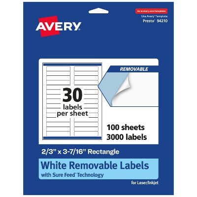 - Avery white labels with proprietary Sure Feed technology provide a more reliable feed through your printer, preventing misalignments and jams