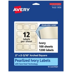 Avery Pearlized Ivory Arched Square Labels with Sure Feed Technology, Print-to-the-Edge, 2" x 2-3/16"