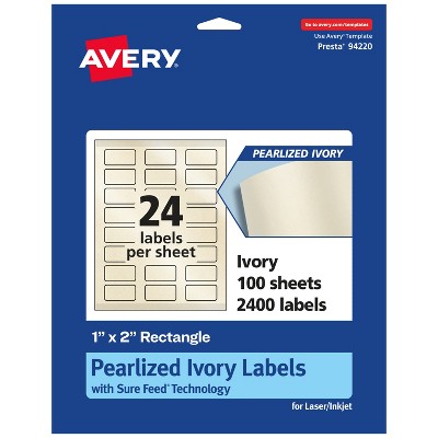 Add an elegant touch to wedding labels, labels for food containers, mason jar labels, canning labels, ingredient labels, soap jar labels and more with Avery 1" x 2" Pearlized Ivory Oval Labels. The finish of the pearlized ivory material reflects light with a radiant glow that elevates any project. Sure Feed technology reduces jams or smudges by creating a more reliable feed through your printer. The print-to-the-edge layout lets you print beautiful full-bleed designs that fill each blank sticker to the edge. The Pop-Up Edge lets you fold the sheet back to pop up the edges of each label for faster peeling. The permanent label adhesive makes sure that your labels stick and stay. Dual-compatible with both laser printers and inkjet printers. Easily customize personalized labels using the label templates and designs in Avery Design & Print.