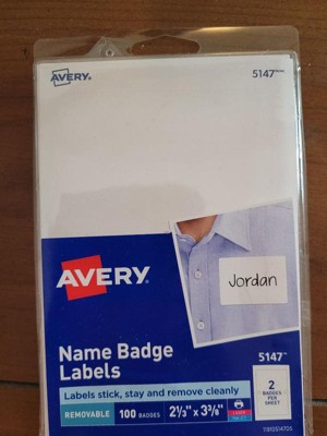 Avery Printable Adhesive Name Badges, 3.38 x 2.33, White, 100/Pack