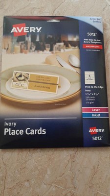 [This review was collected as part of a promotion.] Avery Products are always great quality, this is no different. I used the template to create place cards for a Bridal Shower . The template was easy to use and there were alot of design options. I was able to print these on my inkjet printer. To me, the ivory color gives it a touch of class compared to plain white. The paper was a good thickness and it didn't feel flimsy.
