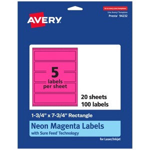 Avery Neon Magenta Paper Labels, 1.75" x 7.75" Rectangle