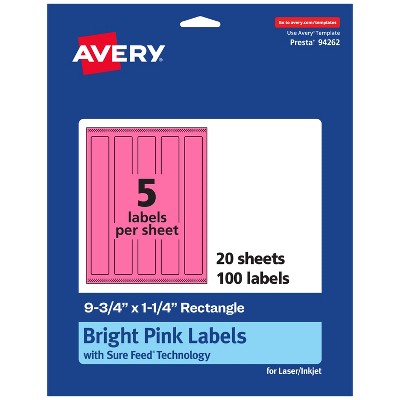 Avery Neon Magenta Paper Labels, 9.75" x 1.25" Rectangle