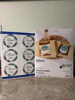 Avery Printable Round Labels with Sure Feed, 3" Diameter, Matte White, Permanent Adhesive, Laser & Inkjet Printers, 150 Blank Labels (5655)