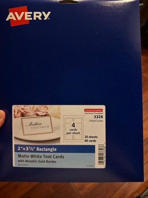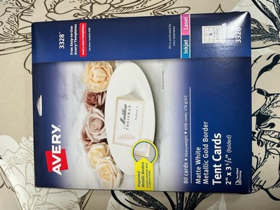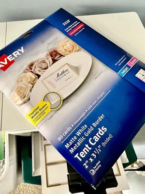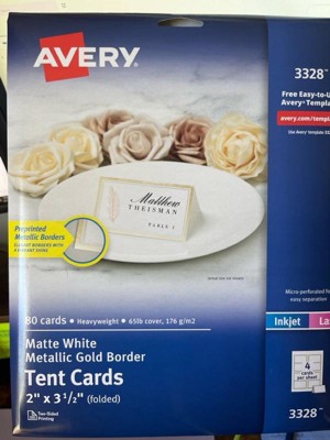 Avery Printable Tent Cards, 2" x 3.5", White with Metallic Gold Borders 80 Blank Place Cards for Laser or Inkjet Printers 3328