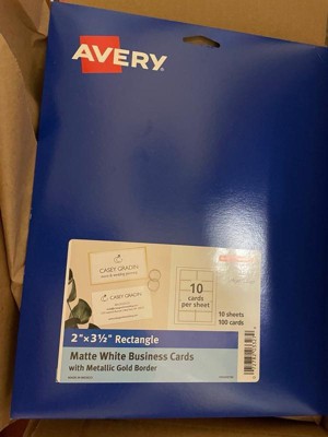 [This review was collected as part of a promotion.] I really like how it came nice and package well protected the business cards they are very great quality great for any kind of business card and or thank you card it is versatile and you came so what you like but my personal use is for my thank you cards for my small business and I was very pleased with the quality and the way the ink stick well to the paper this sheets actually are able to print in both side if you want to keep adding more information and just so you know one side is blank and the other side has a gold metálica border it is both lasher printer and inkjet compatible with this card stock it has like pre cut so all you do is fold a bit the paper and it card rips right off love it this package came with 10 sheets which makes 100 cards
