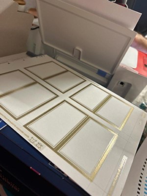 [This review was collected as part of a promotion.] The Avery metallic gold border tent cards make great place cards. The card stock is a good quality and easy to print on. It is easy to use the Avery online program to print on the cards. I recommend trying them.