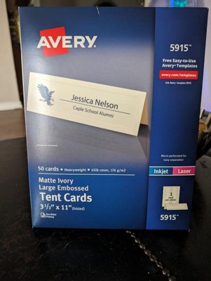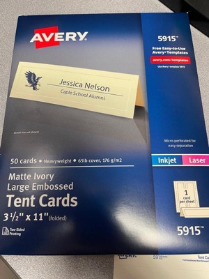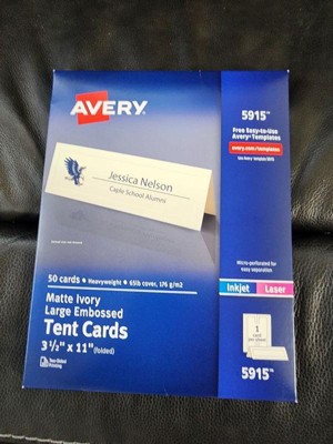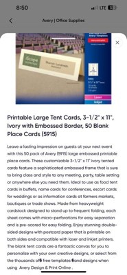 Avery Printable Tent Cards, 3.5" x 11", Ivory with Embossed Border, 50 Blank Place Cards for Laser or Inkjet Printers (5915)