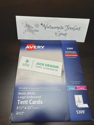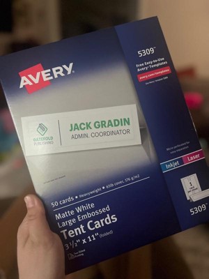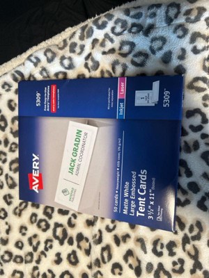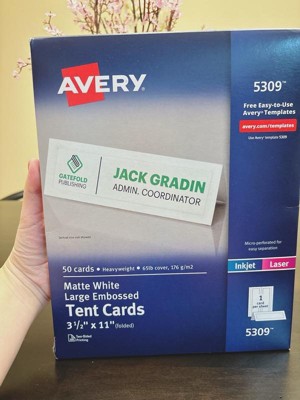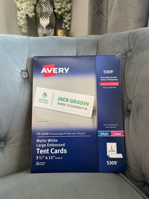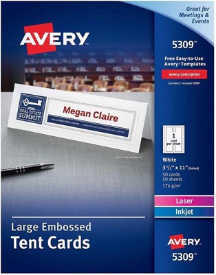 Avery Printable Tent Cards, 3.5" x 11", White with Embossed Border, 50 Blank Place Cards for Laser and Inkjet Printers 5309