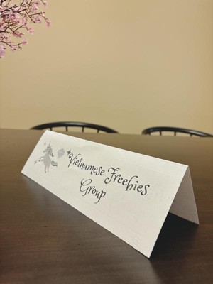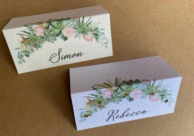 I love these cards since you are able to print so that the name shows on both sides. Use the built in application to format the names, save as a PDF then print your name tents. Great product!