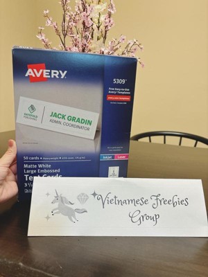 [This review was collected as part of a promotion.] The Avery large tent cards are perfect for events and presentations! The durability is impressive; they hold their shape well and don’t bend easily. The print quality on both sides is sharp and vibrant, which gives a very professional look. I also love the texture—it’s smooth but sturdy, adding a high-quality feel that’s ideal for business use. Highly recommend these for anyone needing reliable, great-looking tent cards