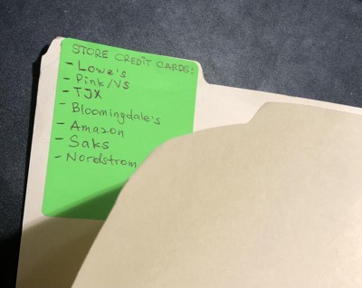 [This review was collected as part of a promotion.] I go these labels when I started re-organizing my personal files. My new year resolution is to eliminate clutter and be more organized. I also continue with my previous goals of re-use and waste reduction. These labels help me with these goals Let me give you an example. I get most of my credit card statements online, but I still have the account opening packets, and store the cards I don't use often in a folder. I now have too many folders - and they have few pieces of paper in them, each. I have been consolidating these files, and needed a label that's larger that I can use it to list several credit cards that I would store in the file. Avery labels to the rescue! They covered the old writing perfectly since I re-use old folders to reduce waste, adhered well, and I love the different colors that I can use to organize my files by categories. The colors really pop - I know to look for neon green if I need a credit card file - and trust me, the color organization reduces the time that you spend looking for the right folder. I also like the feel of the paper - nice matte that is pleasant to the touch. I also like now well the ballpoint pen works on this paper - it goes on smoothly and evenly. Overall - a great find!