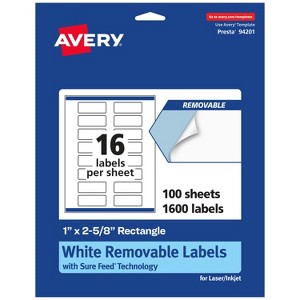 Avery Matte White Removable Rectangle Labels with Sure Feed Technology, Print-to-the-Edge, 1" x 2-5/8"