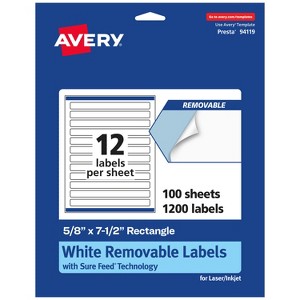 Avery Matte White Removable Rectangle Labels with Sure Feed Technology, Print-to-the-Edge, 5/8" x 7-1/2"