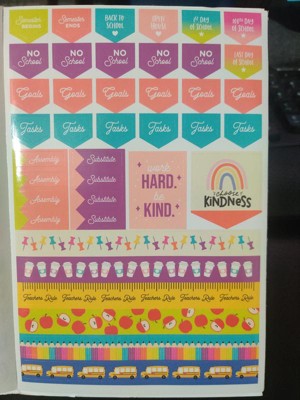 [This review was collected as part of a promotion.] I work at an elementary school so, obviously, I needed some cute planner stickers so I didn't have to write everything out with a pen, lol. There is a sticker for nearly everything "school realted" that I can even think of! The stickers are so cute and, once they're stuck to my clanedar, they don't move! Fun pictures make sure I notice when I have an event on the calendar. I couldn't be happier!
