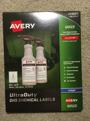 Avery UltraDuty GHS Chemical Labels for Pigment Inkjet Printers, Permanent Adhesive, Waterproof, UV Resistant, 3-1/2" x 5", 200 Labels (60523)