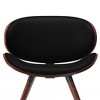 - Mid Century Modern design features comfortable curved padded seat and seat back, walnut veneer on bentwood frame, metal back support bar