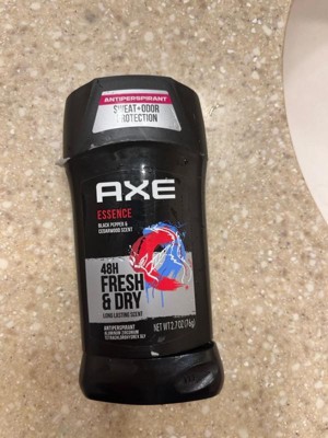 Refresh your essence. Get deep freshness that lasts all day and all night long. Because you never know when opportunity will strike, you need an antiperspirant that's going to keep you smelling 100% ready. With 48-hour Sweat and Odor Protection, AXE Essence Antiperspirant Deodorant for Men guarantees dryness, no matter what comes your way. Discover a fragrance that captures your light and dark sides. Let your admirers lose themselves in the intriguing scent of Black Pepper & Cedarwood.