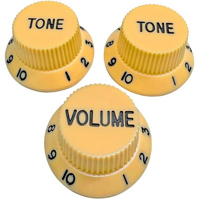 The AxLabs Strat-style knob set universally fits metric and UNC knurled split-shaft pots. A blank internal bore hole form-fits to the pot splines to ensure a perfect fit.