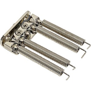 The AxLabs Tone Claw is a robust spring claw engineered with a locking clamp plate to lock the springs down at the hoop ends. CNC-machined from solid brass and at 4x the mass of a traditional claw, the Tone Claw is designed to increase sustain and enhance tonal qualities while also aiding tuning stability by preventing the springs from shifting or popping out during heavy tremolo use. With a traditional claw, the vibrational energy transferred from the sustain block through the springs dissipates as it reaches the claw because of the poor contact area between the spring hoop ends and the standard claw tabs as well as the thinness of a standard tin plate. The Tone Claw's locking clamp plate, in conjunction with the form-fitting posts (where the spring hoop ends connect), significantly increases the contact between the springs and claw. Instead of ending its path, this vibrational energy from the springs is transferred into the Tone Claw and sent back through the springs and into the sustain block thus improving sustain.Installation is easy and a direct swap for most existing spring claws such as those from Fender, Floyd Rose, PRS, Ibanez and many others. The kit includes all hardware necessary for installation: four quality steel springs and two claw mounting screws. An adjustable ground soldering tab is also integrated which can be switched between two available mounting holes depending on the required orientation.