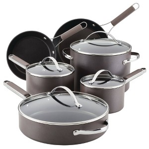 Ayesha Curry Professional Hard Anodized 10pc Set Charcoal: Nonstick Cookware, Oven-Safe, Hand Wash, Gas & Electric Compatible