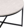 Make a statement in your living room with our Ayla marbled finish coffee table. This round coffee table has a glam, mid-century modern feel that will complement any home décor. The mixed material design of a durable marbled effect tabletop and sleek black metal legs completes the look. Easy to assemble and easy to style this is the perfect addition to any living space.