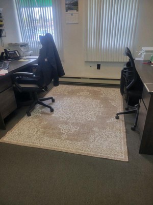 [This review was collected as part of a promotion.] I am using the Nicole Miller indoor/outdoor patio rug in my office to cover a worn out carpet and it has made a world of difference in how my office looks. It lays down nicely and I seems easy to keep clean. I have had alot of compliments on the looks of this rug from everyone who walks into my office. I would recommend it for either indoor or outdoor use.