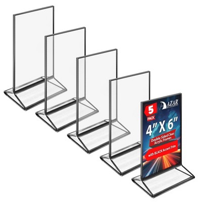 Azar Displays Double-Sided Clear Acrylic Frames with Accent Trim 4" x 6", 5-Pack