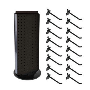 Azar Displays Two-Sided 8W x 20.75H Pegboard Counter Display Tower with a revolving 9 Base and 16 polycarbonate locking peg hooks that are 4 in length. The polycarbonate hooks ensures durability, and securely locks into place on the pegboard so the hooks stay secure when loading or shopping product. This two-sided counter pegboard spinner display sits on a revolving plastic base. Catch your customers attention by featuring products at the customers eye level. The counter peg tower display is simple to assemble. Add hooks, bins, buckets or trays, then load your product and you’re ready to start selling. The small counter pegboard display is ideal to sit on any counter or table top in convenience stores (c-stores), toy stores, boutiques, specialty stores, trade show booths, or any retail environment. Our tabletop displays for retail merchandising are easy to clean and maintain. They are strong, highly durable and take up minimal space on your counter. Choose your preferred color- choose from the many available pegboard panel colors! Make your product pop with signage and branding using the T-strip on top of the pegboard display tower. Sold in Multiples of: 1 Material: High Impact Styrene Assembled Height: 21H Panel Thickness: 0.125 Panel Size: 8W x 20.625H Base Size: 9 Dia. Base Color: Black displays have a black base, white displays have a white base, and all other colors have a clear base. Includes: This kit includes a T-Strip Sign Holder and 16 locking peg hooks Hook Color: Black displays are sold with Black Hooks, White with white hooks and all other displays are sold with Clear Hooks