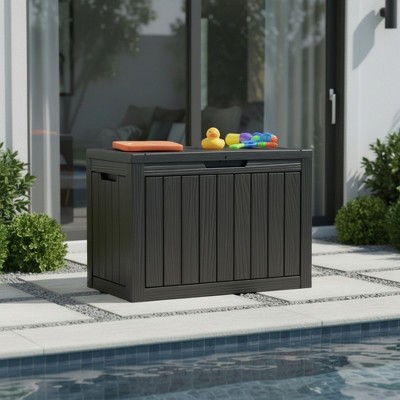 AZL1 Life Concept 31 Gallon Deck Box Resin Indoor Outdoor Storage Box Waterproof Container for Pool Accessory Garden Tool, Black, 22.09"*17.09"*20.87"
