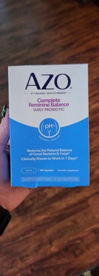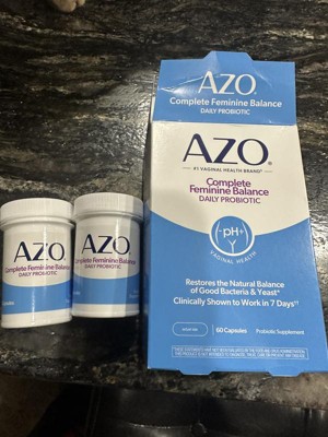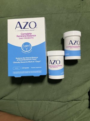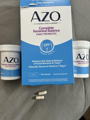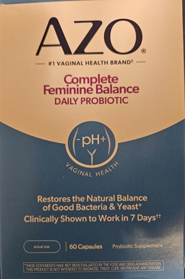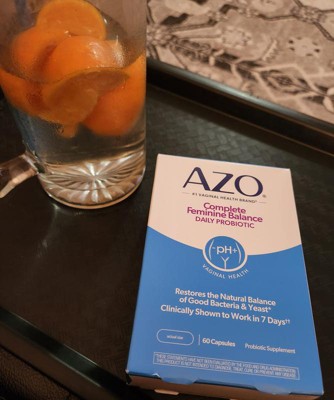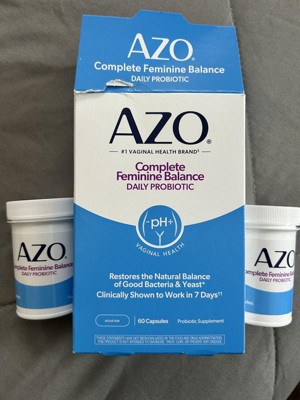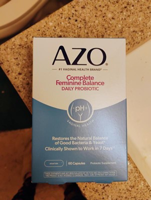 [This review was collected as part of a promotion.] I tried AZO Complete Feminine Balance Daily Probiotic because, as a person wishing to be healthier, I like taking a daily probiotic, and as a woman, I like combining it with a supplement that promotes and restores natural good bacteria and yeast for better vaginal health. It's amazing that it works within one week! It's so helpful that it comes in 60 easy to take capsules one a day, that provides a two month supply. It's even safe to take when pregnant, and that's when I've had the most vaginal health fluctuations. I've also researched about the four types of lactobacilli in the capsules and feel good about adding AZO Complete Feminine Balance Daily Probiotic to my daily health regime.