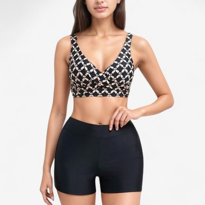 • "Adjustable Halter Neck Top: Customizable straps for a perfect, supportive fit. Chic Ruched Shorts: Flattering, full-coverage bottoms with stylish gathered sides—so comfy, you’ll want to wear them everywhere. "