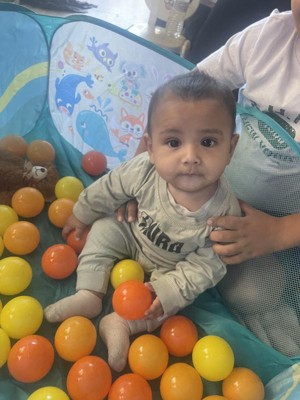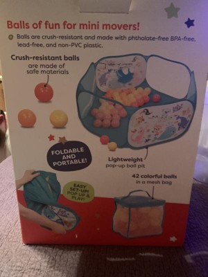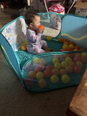 - Includes: This classic play set comes with a pop-up ball pit, 42 multicolored balls in a mesh bag, and 1 transport pouch.