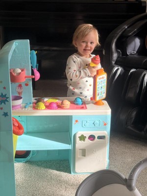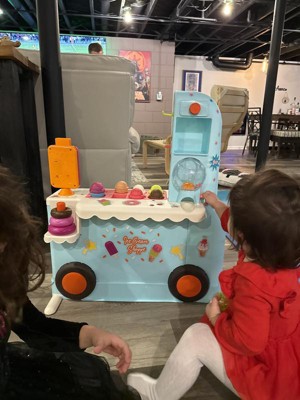 - Fun Features: Explore the light-up tablet, use the ice cream topping dispenser, play a shape sorting game with the popsicles, practice counting with the gumball machine, honk the horn, and much more!
