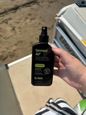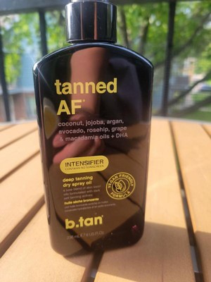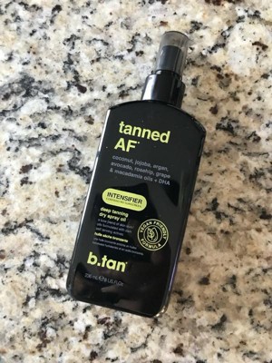 [This review was collected as part of a promotion.] I was gifted this B. Tan Tanned AF Intensifier Tanning Oil in exchange for my honest review. This oil definitely intensified the entire tanning process. After application I can just immediately feel the sun seemingly focus its rays directly on the applied areas and allow for vitamin c soakage to occur until my skin is glowing, hydrated, and vibrant. It's a nice healthy feeling really. It's almost like my skin drinks it on contact. And although it is an oil, it's not overly greasy, sticky, or heavy, nor does it just merely sit on top of skin. It's amazing stuff.