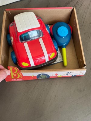 Go forward and spin round & round with the Rally Ripster from B. toys! Designed for little hands and big laughs, this remote control car lets little ones go driving day or night. This toy car is easy to turn when it hits an obstacle, the powerful signal works across rooms, and the flashing colors can light up the space like a disco! If your toddler takes a break from driving, this RC car will automatically turn off to save the batteries. And because we at B. keep the environment in mind, parents will also be happy to know that our packaging is 100% recyclable. 4 x AA batteries are required and included for the car and 2 x AAA batteries are required for the remote (not included). Recommended for toddlers 12 months and over.