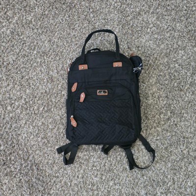 [This review was collected as part of a promotion.] This is a great diaper bag! I really like the look of it. It has plenty of space and has several different compartments to help with organizing, including several bottle holders. The changing pad it comes with is pretty basic, but it’s nice it has something compact that you can use in a pinch. I like that it has backpack style straps, including the clips for attaching to a stroller, but it also has a nice long handle up top so that if you are already holding your baby you can easily grab the bag just by the top handles too!
