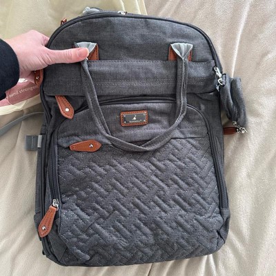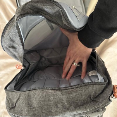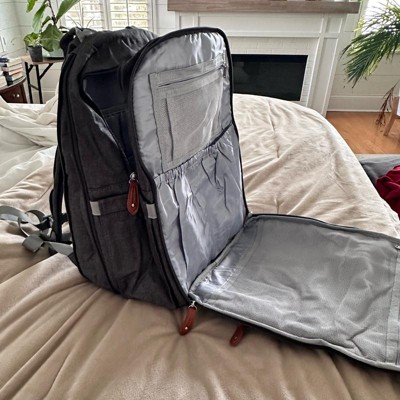 [This review was collected as part of a promotion.] I am so very impressed with this diaper bag! I got this diaper bag in the charcoal version, and it looks and feels very high-quality, even down to the leather pulls and detailing on the backpack. The space in this extra large capacity option cannot be beat. It still appears compact, but this will fit absolutely everything you need. There are tons of pockets all over this backpack, including interior zippered pockets. I love that it has the clips at the top of the shoulder straps in order to attach this backpack to a stroller, and it also has the ability to slide onto a suitcase handle. They really thought of everything with this backpack.